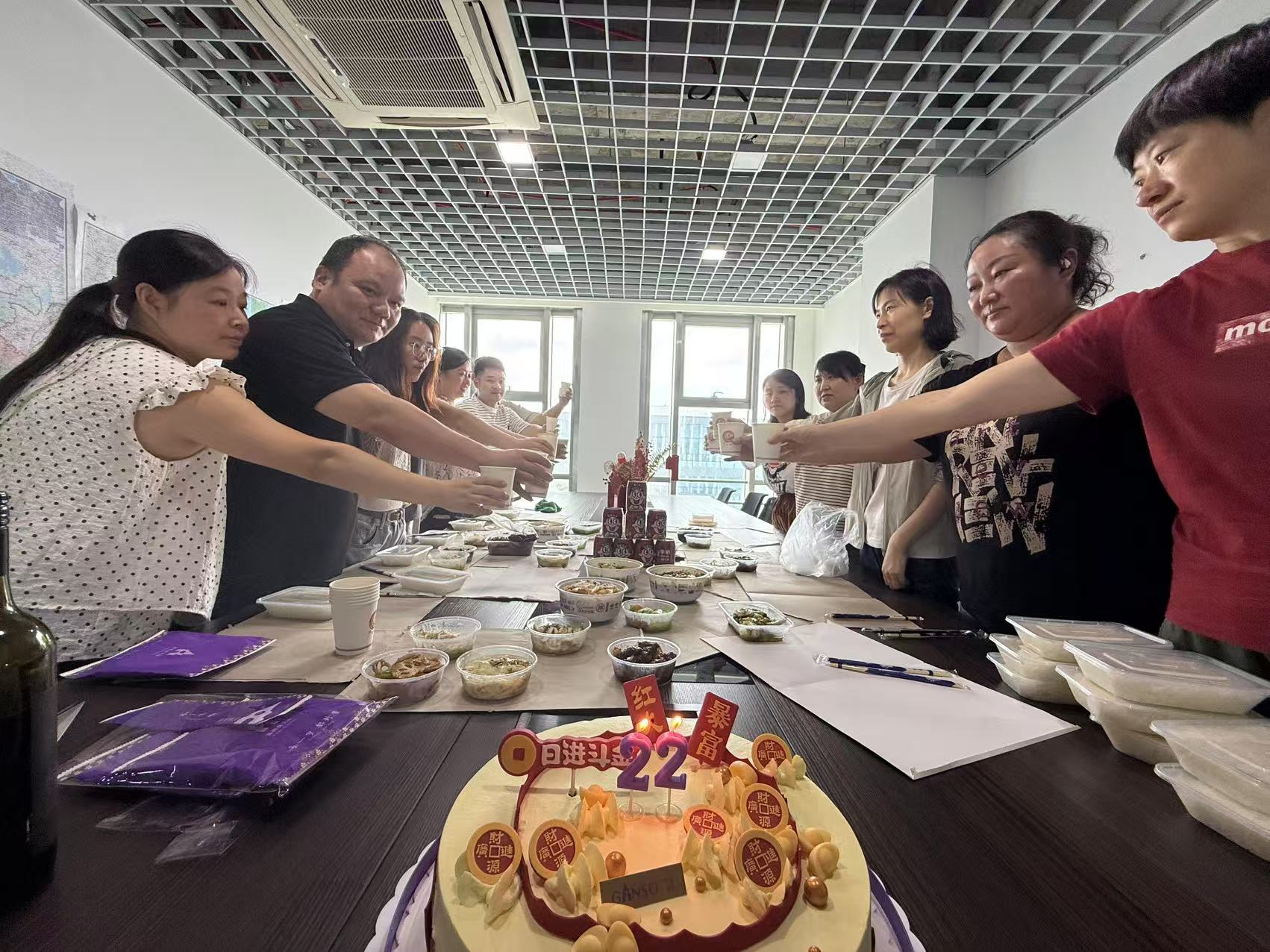 中午大家共享簡餐與慶典蛋糕,舉杯同慶公司22周年華誕與喬遷之喜。